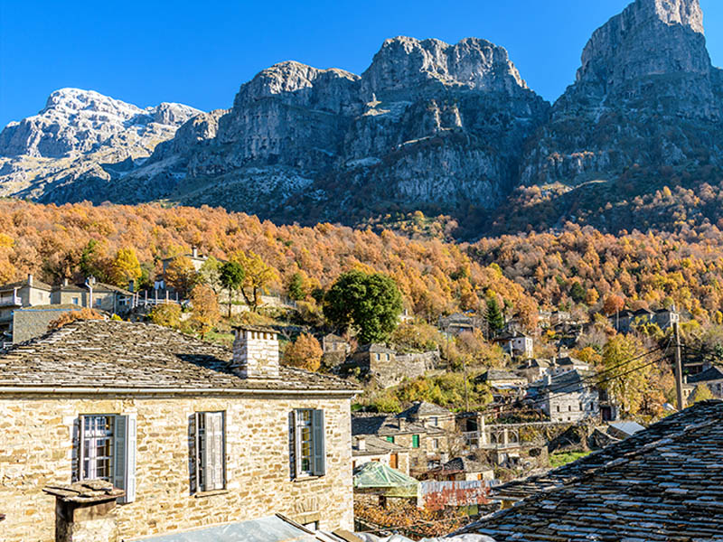 Papigo, consisting of the two villages of Mikro and Megalo Papigo, is one of the most recognizable winter destinations in Epirus. Stone architecture, cobbled paths and views of Mount Astraka enhance the area’s unique character. Access to the Vikos Aoos National Park allows for nature based activities and highlights the authenticity of the landscape.
